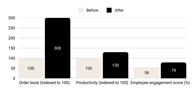 When an IT company decided to grow, lack of productivity and disengaged people were the roadblocks. They could get orders but were not confident of fulfilling them. Putting processes in place, brought higher productivity leading to enhanced order book by 300%