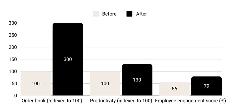 Execute actions with highest rigour and monitor impact. Growth is visible in metrics such as revenue, order book and lower costs
